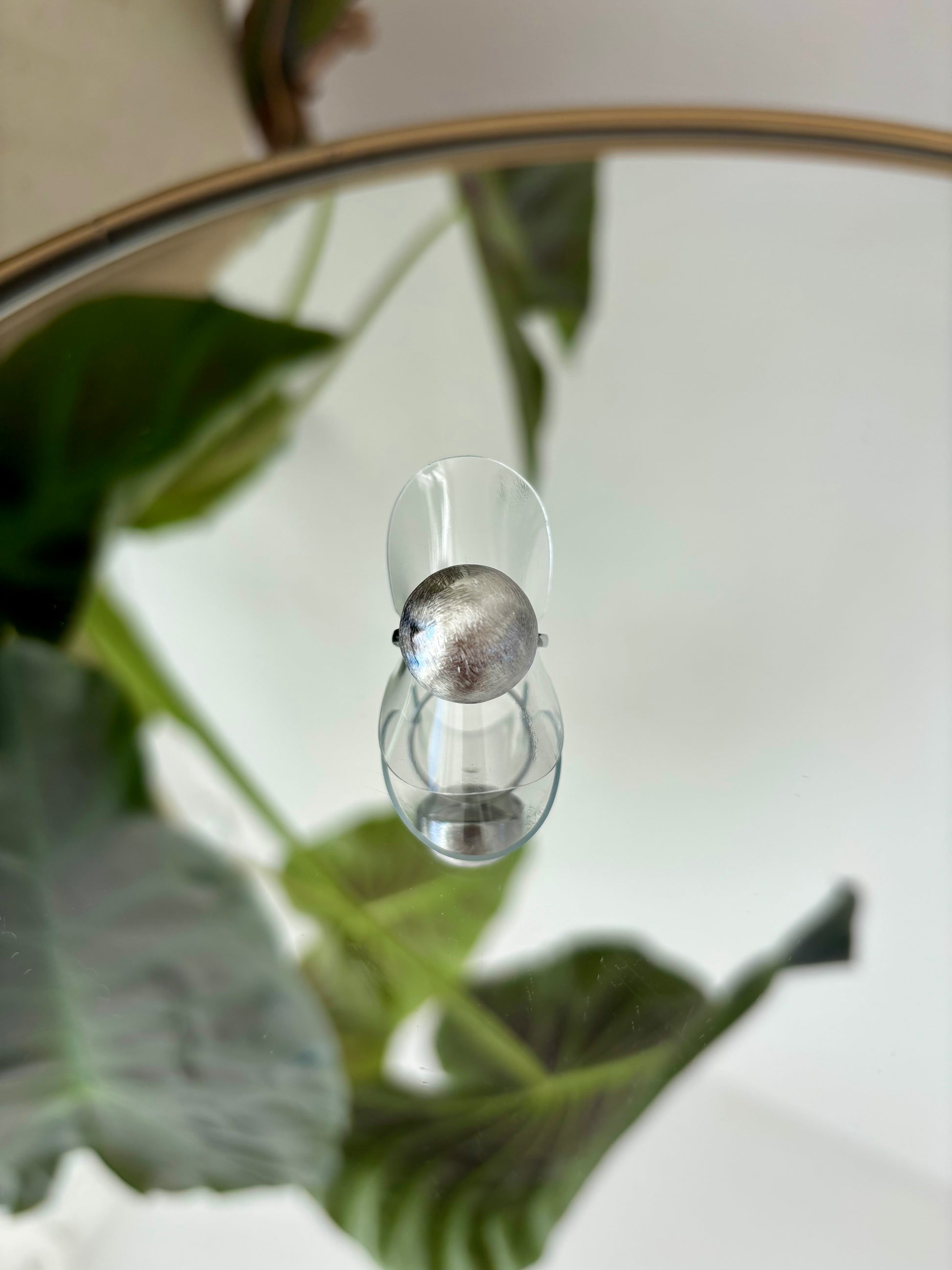 Bague fine ajustable avec une demi-boule effet brossé.