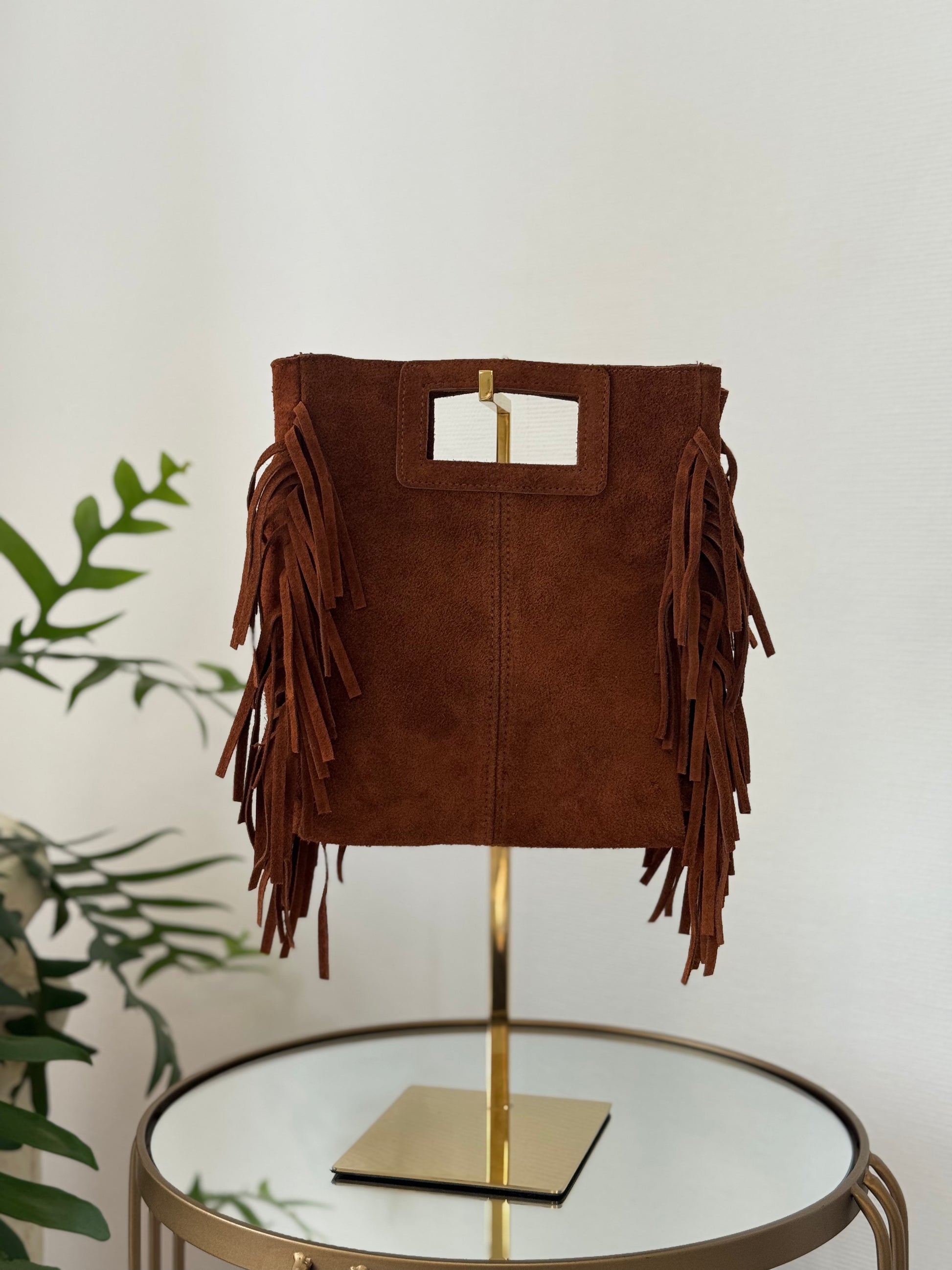 - Sac en cuir Marron avec franges